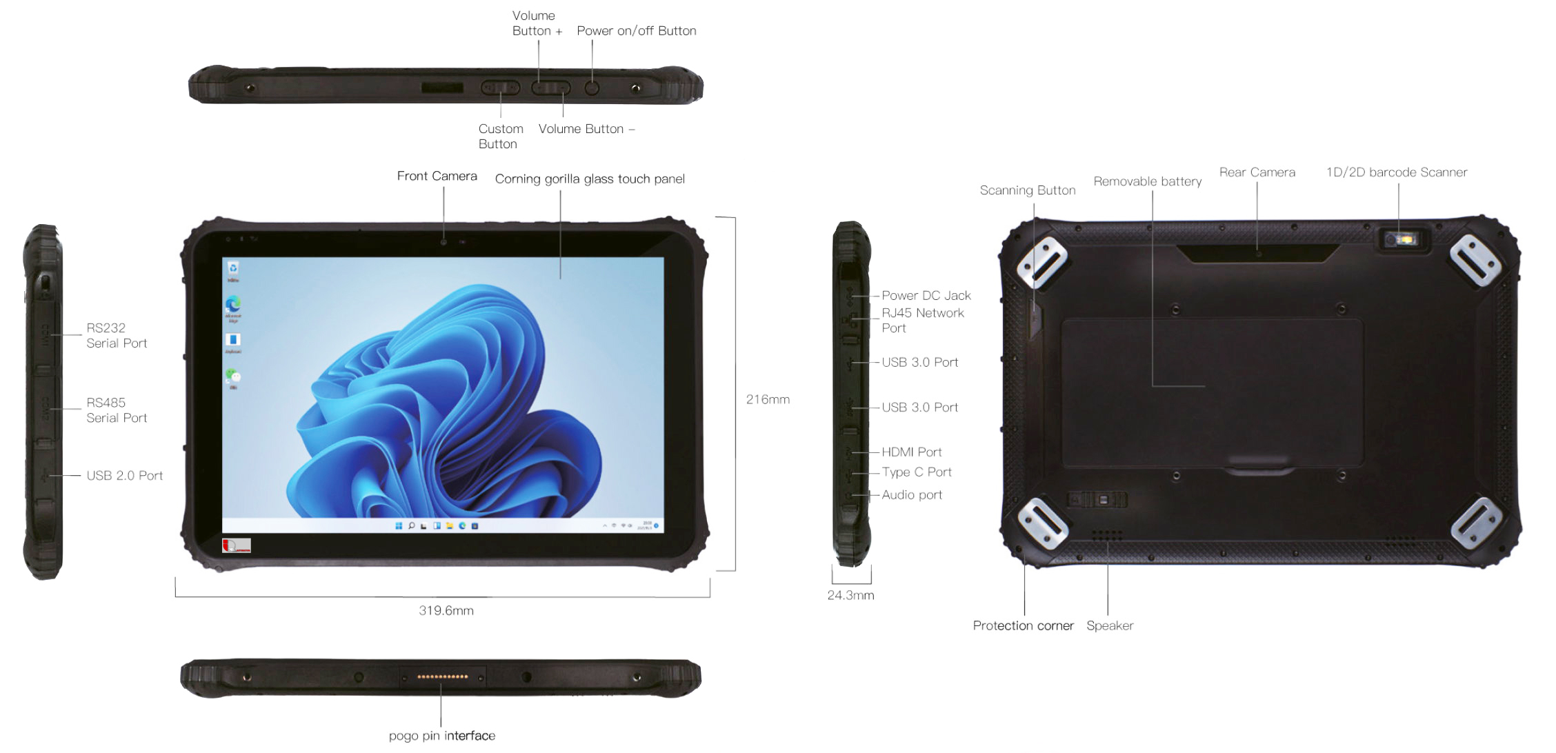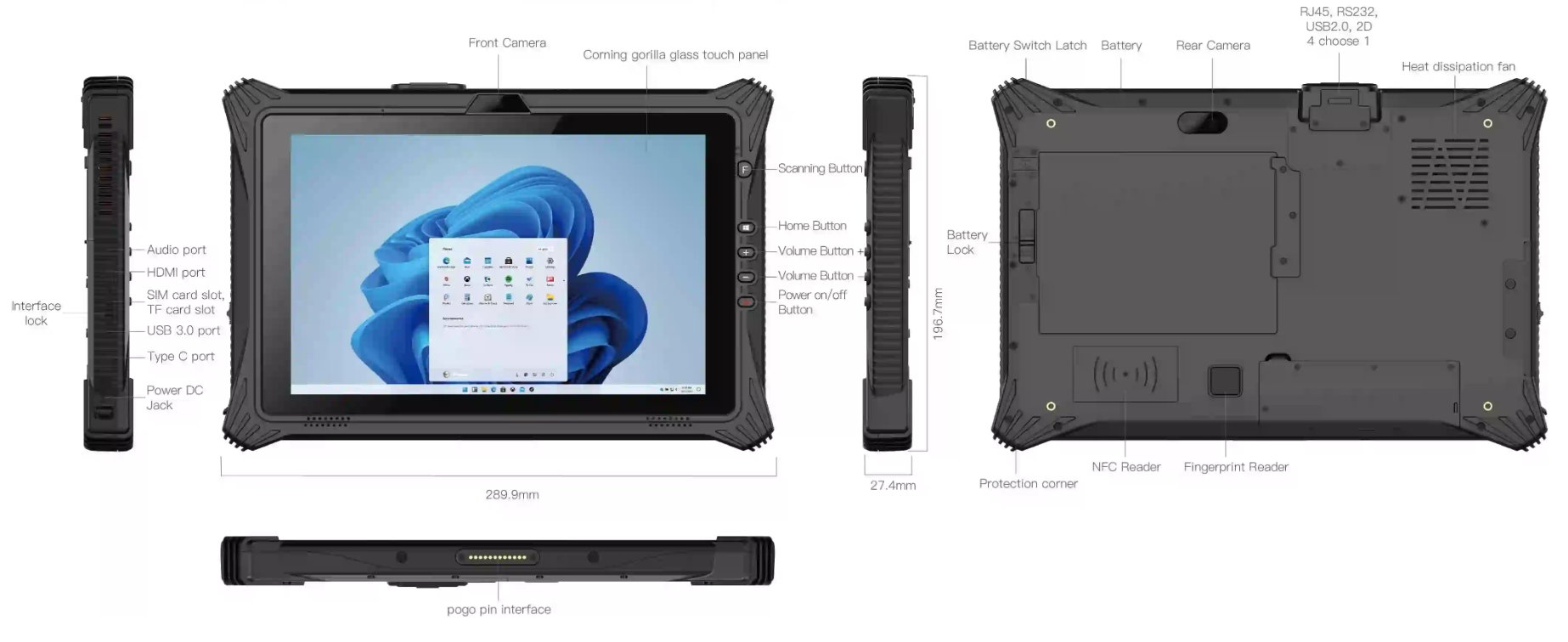 FlatMan rugged Tablet-PC 10zoll mit HD Auflösung IP65 Gehäuse und robisten gehäuse mit Wechelakku -Fungerprint- Barcode - NFCc- RFID - Wifif - Modem usw.